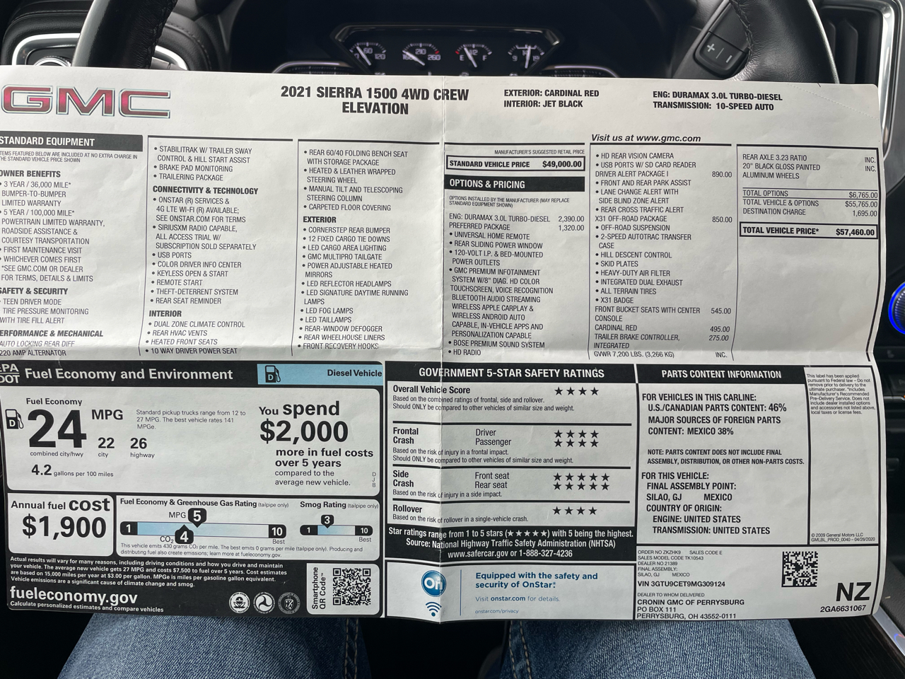 Hop into this vibrant Red 2021 GMC Sierra 1500 and get ready for an adventure of a lifetime! This beast of a truck is equipped with a Trailering Package, perfect for hauling all your gear with ease. With a rugged pickup bed and a GVWR of 7000 lbs, this truck is ready to tackle any task you throw its way. The powerful 3.42 ratio rear axle and advanced Four wheel drive system ensure optimal performance in any terrain.