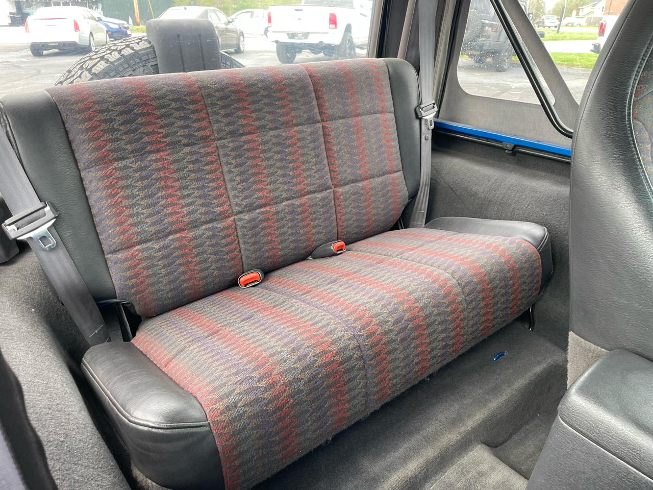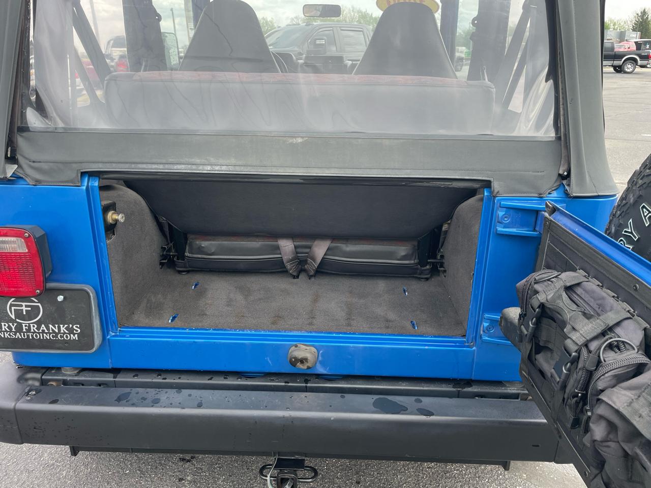 Step inside and you'll find a spacious interior with a matching folding rear seat and plenty of storage options. Whether you're cruising around town or heading off the beaten path, this Jeep offers comfort and convenience with features like a mini floor console, tachometer, and sport bar with full side/rear padding.